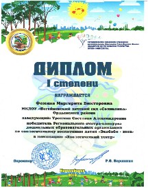 Региональный смотр-конкурс по экологическому воспитанию «ЭКОБЭБИ-2018» 1 место номинация «Экологический театр»