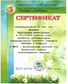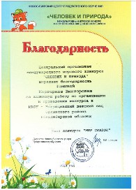 Международный конкурс по естествознанию «Человек и природа» 1 место 12 воспитанников