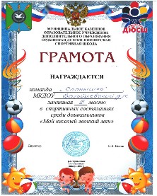 В районных спортивных состязаниях «Мой весёлый звонкий мяч» 3 место